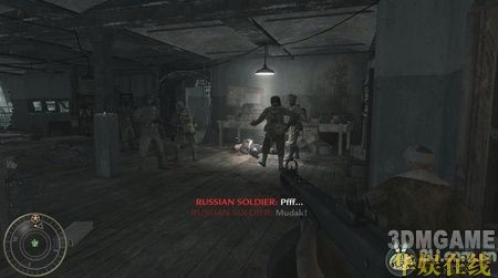 剧情CG过后跟着友军冲进一个房间里,几个敌人正在房间中打电话,找好掩体埋伏好,随后会有命令提示你杀掉敌人。接着走会遇到几个有敌军镇守的房间,躲在墙角小心的解决掉房间里的敌军。一路杀过就出了大楼,来到了街道,这时会有己方的坦克过来帮忙,在坦克的掩护下慢慢向前移动,这里用那把单发步枪比较舒服,敌人都是躲在掩体后面只露出个头,用冲锋枪基本上很难消灭敌人。街道对面的大楼里敌人的火力很猛,不要急着过去,等着坦克搞定他们后再冲过去。
