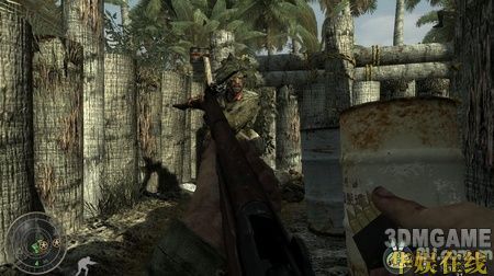沿路跟着队友往壕沟外面走,这时会看到壕沟外面有狙击手在往树上爬,瞄准,搞定他。在你踏进草丛的时候,一共会有两拨敌人从草丛里冒出来,他们用刺刀,所以速度很快,看到他们后一定要立刻后退并开枪。继续前进,在有一辆卡车的地方和敌人展开枪战。这里不要和敌人正面打,在车的正前方下坡处会冲出三名用刀的日本兵,搞定他们,并走进他们冲出来的地方,从那里绕到敌人暗堡的下面,搞定暗堡外面的敌人,再进入暗堡,杀掉暗堡里的敌人,搞定所有敌人后再次回到暗堡下方,会从一个关着的铁门那冲出一个日本将军,杀掉他,本关结束。