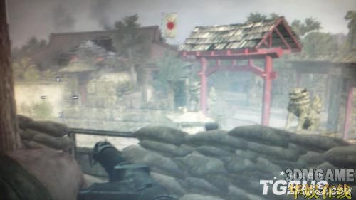本关一开始你是没有子弹滴,需要快速的拾取。然后遭遇敌人阻击,这时候一定一定要稳扎稳打,不要冒头,注意好树上的小日本。全部干翻后,下低调穿越攻击敌军的防守阵地。现在下面扫上一圈,把埋伏的敌人清理干净。再从左路慢慢推进上去,有个机枪手要干掉。左上角会有源源不断的敌人,不要被偷袭到了。最后突入进去,再与防守在城楼里的敌人交火,闯进去需要你用箱子上的迫击炮弹轰炸房屋。随便扔,很爽的...推进到任务摧毁4个迫击炮,炸完4个后就在右边1个红色的房子中会有死亡扑克。然后在处决俘虏的时候一个战友阵亡了...然后你要面对的是日军自杀式的袭击,会给你空中支援打掉对面的大房子。不要冲在前面,找个掩体