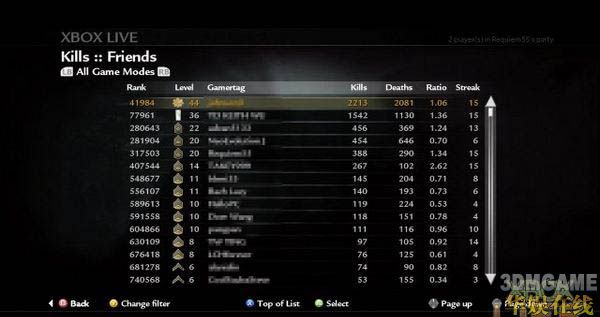 《COD5》的统计资料裡有分析这项目,请进<BARRACKS>选<LEADERBOARDS>,在<KILLS>的项目裡面有详述你的杀人跟被杀数,但重要的是后面的<RATIO>这项数字,如果是1.0以上表示你死一次至少带一个敌人归天,这是基本要求,再来就是向上提升了,我的好友裡有一个在《COD4》裡K/D RATIO 2.0的人,我又称他为呼唤胜利的男人,他是KGB团的老大哥啊信,他的胜率就是4.0,也就是他赢四场才会输一场,显见每个人的K/D RATIO 跟团队胜负是息息相关,所以新手上路如果能够好好的控制死亡数,就是对团队做出了贡献,但也不能就这样怕死龟起来不出去,如果都没杀到人那等于也是没贡献,当然成绩不是一切,胜负亦是如此,但如果一直输想必也不会开心到哪裡。