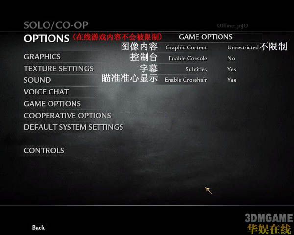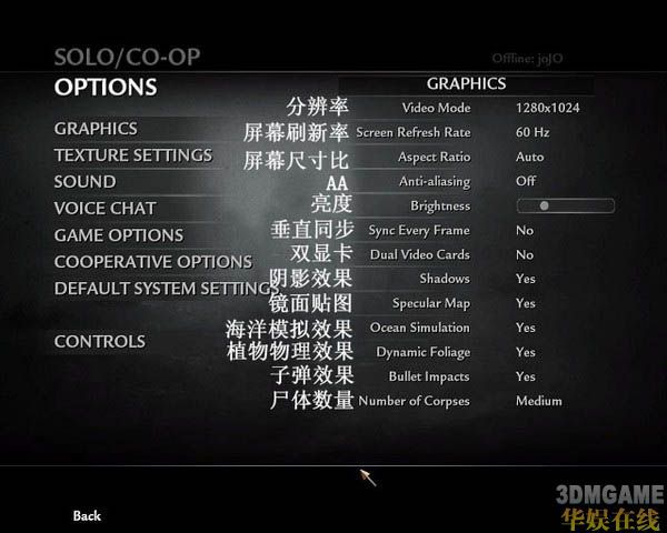OPTIONS里面其他的就暂时不翻译了,没什么,跟COD4差不多.平常也不用调什么.