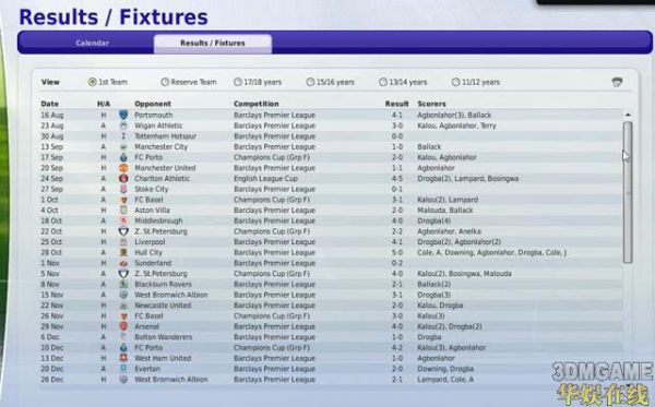 这是赛季过程,其中大比分获胜的场次是相当可观的,由于德罗巴和埃辛赛季初是重伤状态,所以开始阶段稍微困难些,转会方面,只买了两个人,一个是米堡的唐宁,一个是维拉的阿邦拉霍,目前看,至少二人没有让偶失望