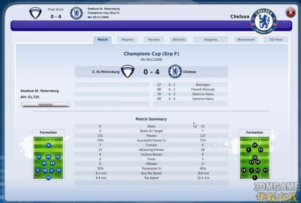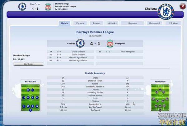 其中不乏得意之作,比如大胜阿森纳,泽尼特,利物浦等,而且场面绝对压制,下面是一些大胜对手的3DMAT图