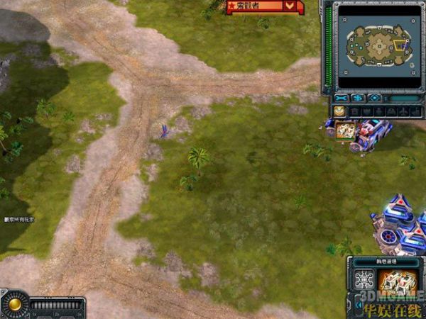 东边为日升帝国的大本营.EVA采用了电-兵营-电的开局.没有采用2或3兵营首发进行RUSH,也没有把兵营车部署至地图上的油井处利用工兵抢占,以夺得经济优势.他的意图是什么呢?