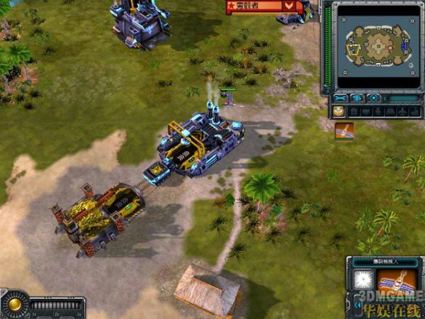 与此同时,另一个小机器人与一架阿波罗战机擦身而过,但是并没有擦出火花.阿波罗战机到了日升帝国基地上空进行监视,而小机器人则去盟军采矿车上掐油.骚扰盟军的经济来源.