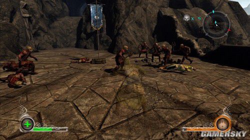 这里可以看到亚拉冈演出一夫当关万夫莫敌的戏码,透过强而有力的连续技与范围攻击,要守住缺口并非难事,玩家只要注意不要为了追逐逃走的敌军而离开缺口太远,而造成其他敌军有机可趁冲入城内,就能够轻松地完成这个关卡。