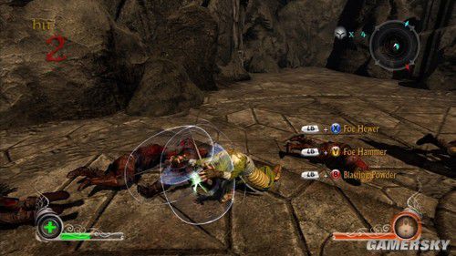 只要按下LB即可让手中的宝剑处于燃烧状态,此时搭配上X键则可施展出火焰冲击,玩家会快速地在地上画出火焰波,向前冲锋后将宝剑由下往上挥舞,最适合用来冲入敌阵突破敌人阵形。