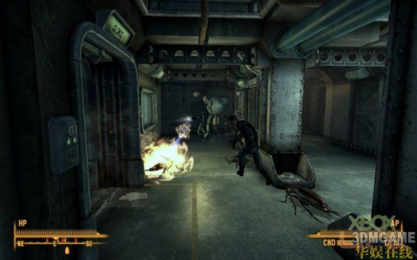 我迫不得已,开枪射杀了那些警卫,然后小心翼翼地继续走上楼去。一群群的蟑螂涌了下来,我尽可能在远距离射杀掉它们。天知道被这些蟑螂咬到会发生什麽事!然而,阶梯上,迴廊上,到处都是蟑螂的尸体,有个警卫跟这些蟑螂尸体死在一起,他似乎是跟这些蟑螂的搏斗中死亡的。从前的Vault从未出现过这样的景象。我总以为这儿很安全的,怎麽一觉醒来,整个世界都变了?!