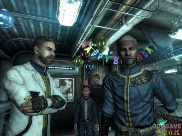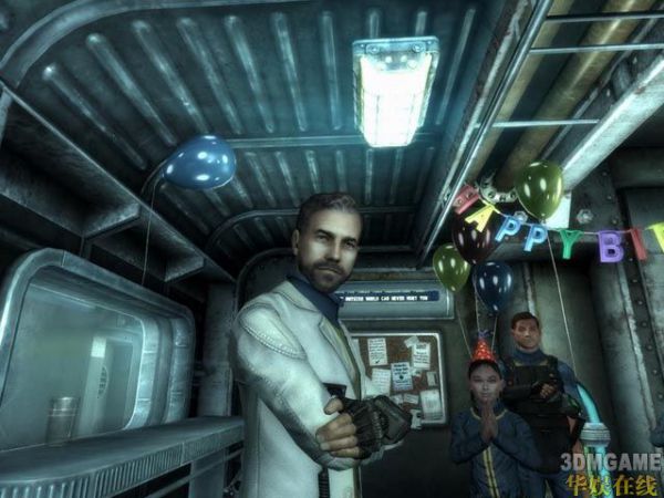 10、话没说完,老家伙过来了:你不会知道今天对你对我都是一个多么有意义的日子,每一个101居民到了10岁都会得到一个盒子以尽他的责任,这是非常老式Pipboy 3000,也许你明天就可以开始“任务”了(“奸笑”),Enjoy your party(Pipboy 到手了,可以开始泡MM了!)