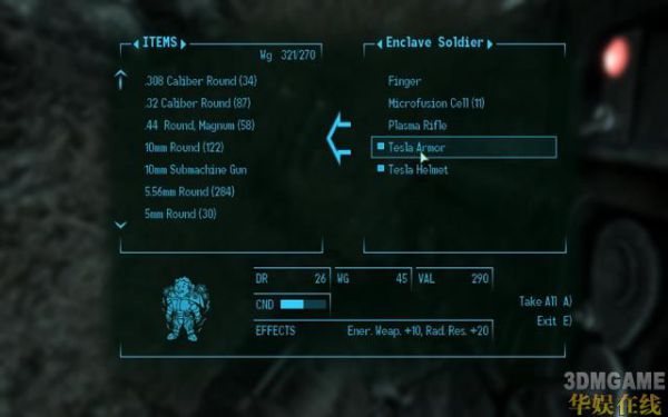 找到辐射2当年的动力甲...好丑..但属性非常强...衣服50防.头盔10防..状态全满..杀人越货必备