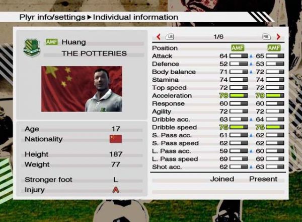 于是第二次改用前腰,头2场比赛都是7.5分,第四场虽然还是训练赛但是进了主力阵容一边,第6场就成了板凳队员,但是没能上场,第8场替补踢了半场,第9场替补进一球还是最佳球员,第11场以后进入主力阵容。