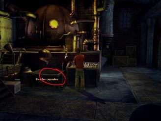 到图书馆找jonas谈关于时间机器的事,他说需要琥珀kalas知道哪儿有。天哪,kalas因为烟火的事还被关着。换到白天去town gate跟waldo交谈,选择第二句后又被关了起来,见到了kalas。跟kalas交谈得知要找的琥珀很容易但需要借助水晶的力量。从地下通道去工厂用地图到town gate后换成白天。从simon左边的水槽上拿到一个小罐子melting pot,melvin自动把它放进了simon身后的炉子里,把胸针brooch和针pins放入得到铜针copper coated pins。