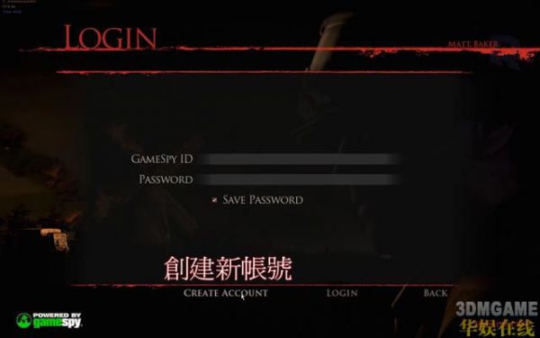 按BACK返回 6. 回到登入画面 GAMESPY ID:帐号名~ PASSWORD:密码~ 按LOGIN登入! 7. 登入后看你要主持一个新游戏还是加入别人的游戏了