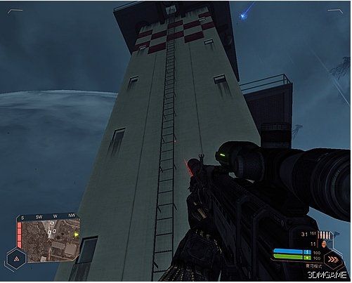先想办法从外侧潜入飞机场,我是曾经四度想从正门强行突击,无果。结果在侧面发现一个小洞,进去了。小心敌军的轻坦克,被他打一炮可不好玩,我是四处找没看到RPG,最后火了,隐身埋c4,炸坦克!然后前往货柜处,一定要找到火箭筒消灭货柜旁边的轻坦克。然后到达货柜处,接到新任务,前往机场控制台!看地图,晕!从货柜处到控制台起码2公里!我是选择登上吉普车,前进,高速前进,全速前进。朝军的rpg和炮弹子弹在你车边,飞啊飞!晕。看你的RP吧,应该可以撑到控制台的附近的围墙处。从外围围墙的两辆停着的报废汽车处,跳进去。(别指望从正面进去,尤其在高难度下,除非你锁血了)。进入控制台,我是在控制台处混战了10分钟,N次想从外面的楼梯上去,发现太高了敌人会一直在下面招呼你,想法杀进控制台里面,从里面的楼梯上去,那密密麻麻的红点黄点哦,我起码在门口杀了三十多个人然后才上去,我是曾经1枚手雷下去,7人见上帝去了。登上控制台顶上,联系友军搬走货柜!突然,外星人全面来袭,机场的朝军猝不及防。奥尼尔指示你,去坠毁的C18运输机拿新式武器消灭敌人,我居然找这个武器找了6分钟左右,囧!在一个密码箱里面找到新式武器PAX电浆浓缩炮,消灭货柜处的外星人八爪机甲,感觉和诺曼打的BOSS没的比,比庆将军聪明不了多少,大概不到10发,搞定!即使是高难度的情况下。结束,看动画吧。