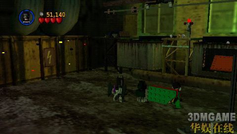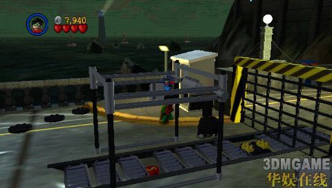 接着让Batman把附近的箱子炸碎,将积木搭成重力壁后上去。拉下开关后放下梯子让Batman上来。炸掉铁门后进入。