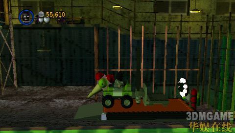 中间的积木可以搭成服饰装置,让Batman换成Demolition Suit。随后跑到右边,由栏杆上去后炸掉铁门,让Robin换成Magnet Suit。