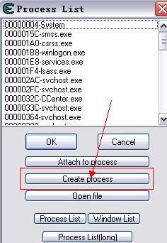 占击右上电脑图标,点击箭头所指按钮(create process)