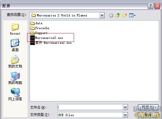 然后导航到游戏安装目录,打开游戏启动文件,参数不用加,直接OK
