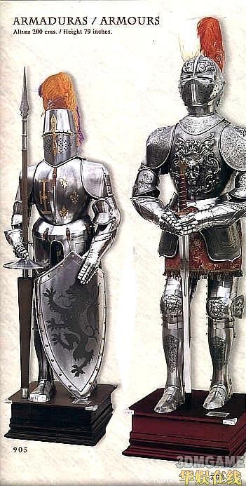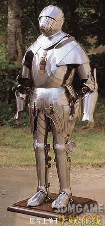 中世纪,骑士作战时用于保护身体的铁甲叫甲胄(body armor)整套的铁甲称为全身甲胄(a suit of armor)甲和胄一套称为全副盔甲(panoply)还有链甲(chain armor)和板金甲(plate armor).