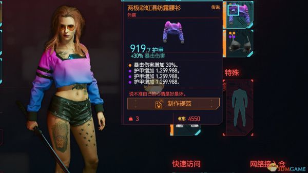 《赛博朋克2077》传说两极彩虹混纺露腰衫获得方法