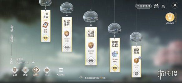 星落激战和星落演兵都是20v20的实时竞技。前者积分翻倍,但每天仅限一次;后者不限次,每天开放8小时。