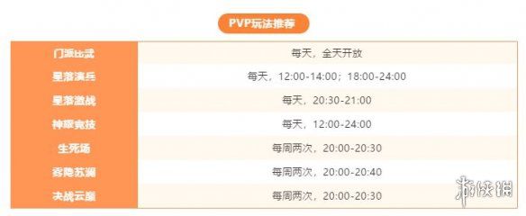 其他PVP玩法:比如生存玩法生死场、通关夺宝玩法雾隐苏澜、5v5竞技决战云巅,则都每周两次。开启时间不同,冒险家按这张表来就可以啦↓