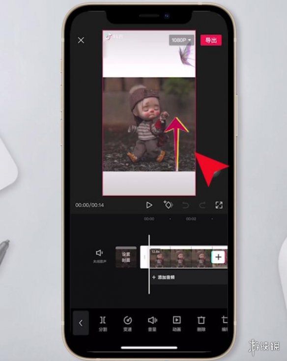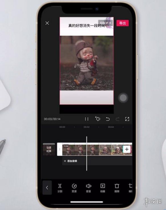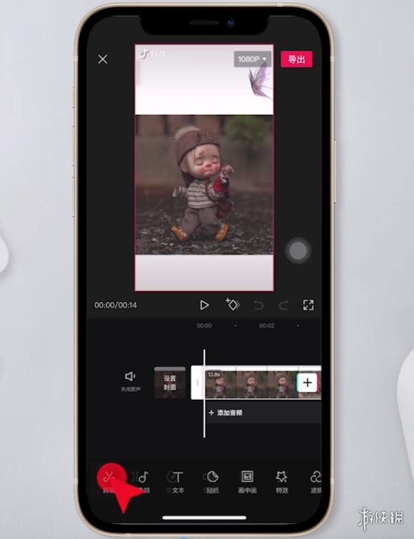 添加,点击底部的剪辑,拖动视频可进行裁剪将水印截去