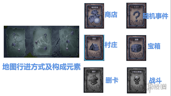 随机事件:内容随机,有好有坏,还有部分特定在随机事件里才能获得的卡牌。