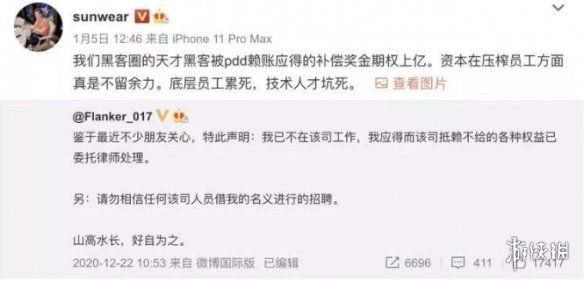 “我们黑客圈的天才黑客被pdd赖账应得到补偿奖金期权上亿。资本在压榨员工方面真是不留余力,底层员工累死,技术人才坑死。”——来自sunwear微博