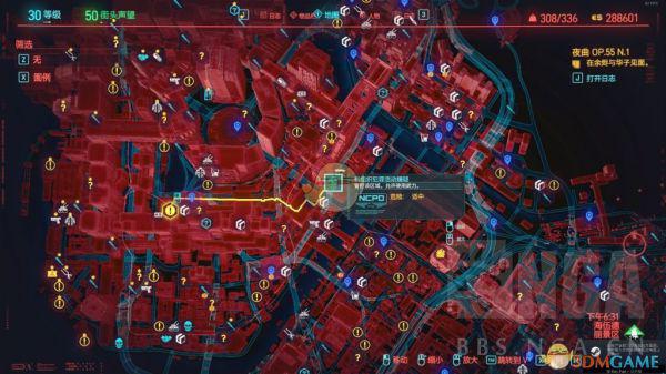 《赛博朋克2077》中的传说武器HJKE11-幸村是很好用的,不过需要使用图纸制作,不做的话就要去刷BOSS,图纸的获得方法是到海伍德丽景区如下图鼠标的位置清一个管制区域就行了,可以从里面的一个敌人身上搜到。