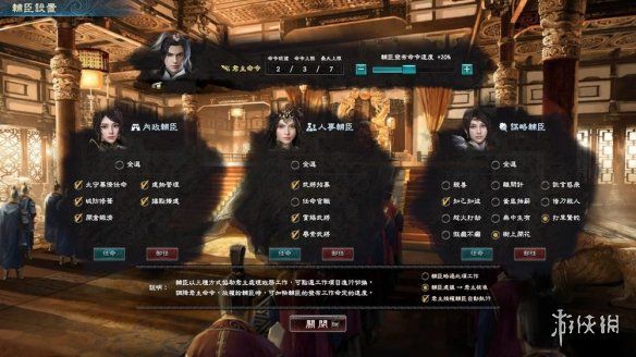 而不论是辅臣自己执行还是提案后执行,都不会消耗玩家的君主命令,所以设置辅臣相当重要。