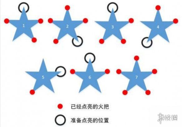 按图所示,依次用火元素角色点燃就OK了。