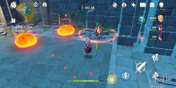 这个要重点注意一下,这里会有水元素的深渊法师、水和冰两个大史莱姆、水和冰两个丘丘人弓箭手。提前要做好准备,这里的持续控制特别恶心,你没有出手的机会。跟上面两个一样,先打突变石再打怪。
