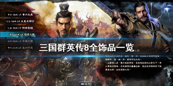 三国群英传8饰品有什么?很多小伙伴可能对游戏中的饰品还不是很了解吧,今天小编给大家带来三国群英传8全饰品一览,快来看一下吧。