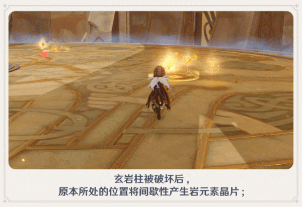 ▲·玄岩柱被破坏后,原本所处的位置将间歇性产生岩元素晶片,为拾取的角色提供护盾;