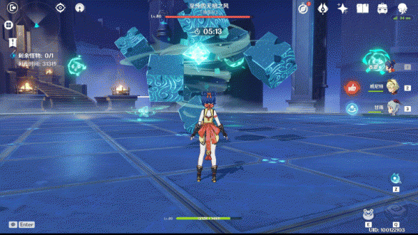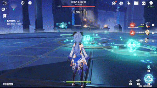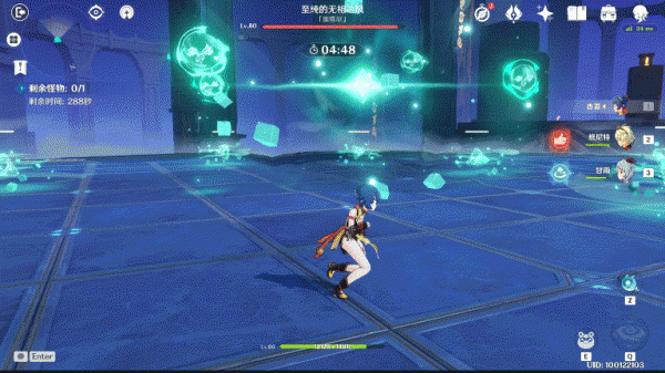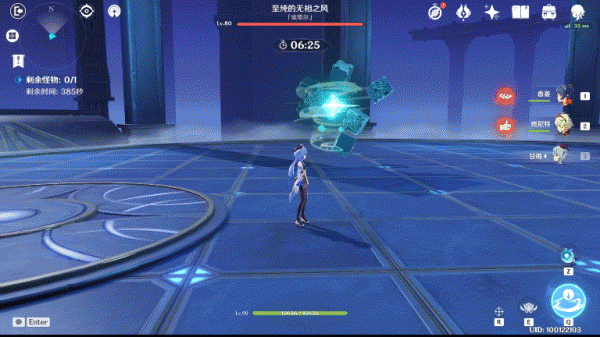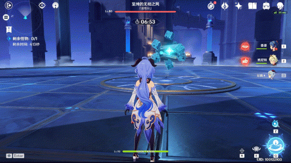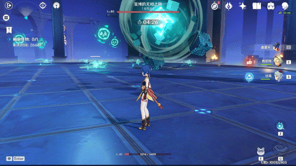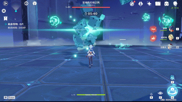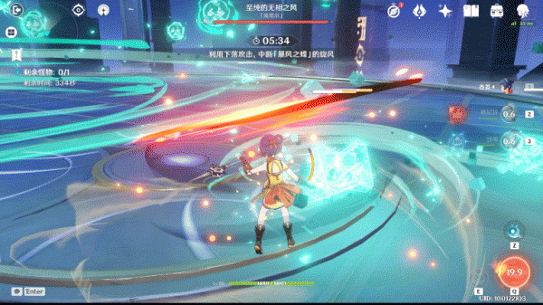 开始阶段,距离无相风过远时,无相风会利用外壳形成风核,攻击旅行者(自身进入虚弱状态),攻击带有预判性(导致了我动都不动一直在我前面砸)。