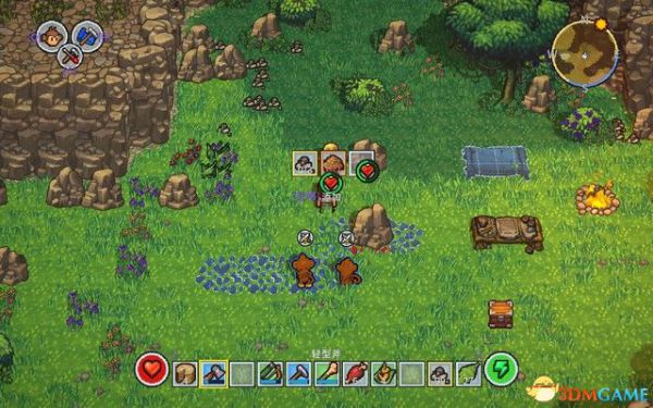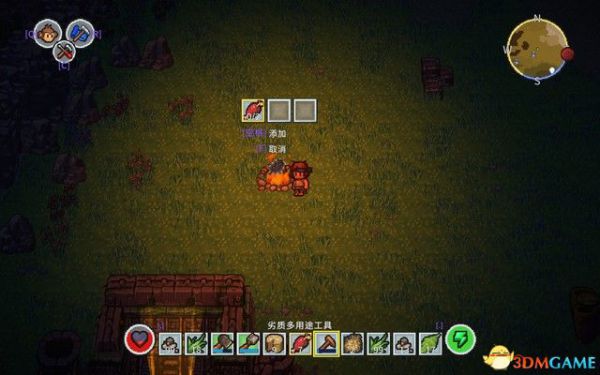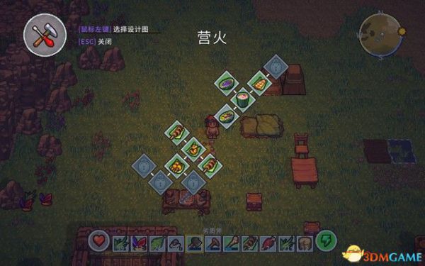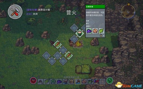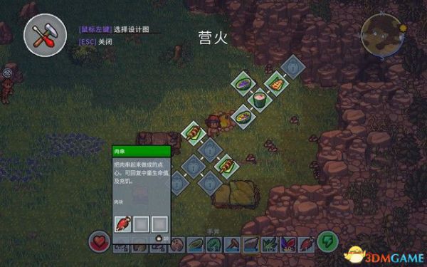 在营火处可以制作食物,食物是充饥和回血的道具,