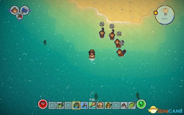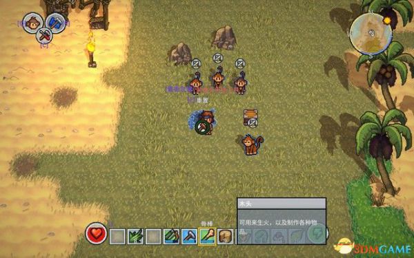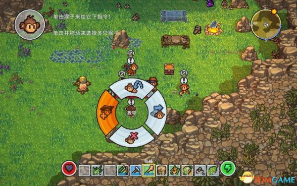 之后你再进行例如采矿、砍树的行动后,只要给猴子工具,它就会不停地干活。