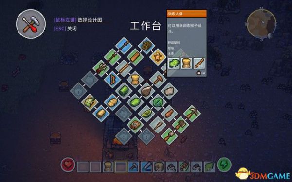 如果要让猴子帮忙战斗,首先,建造工作台,