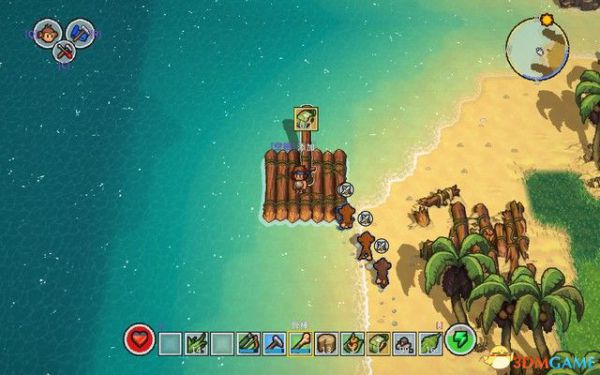 制作木筏(按R)之后,还需要制作风帆才能驾驶,