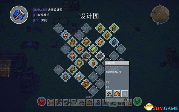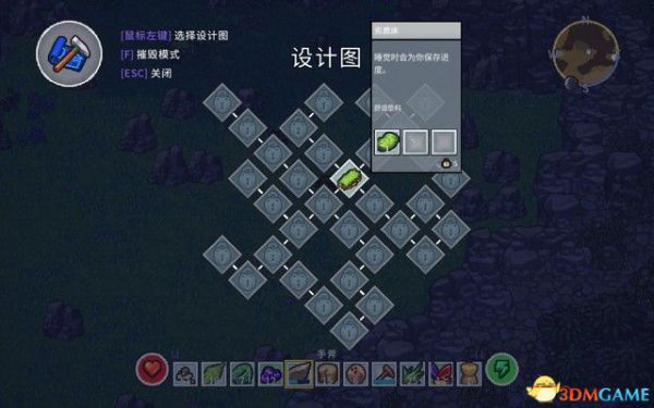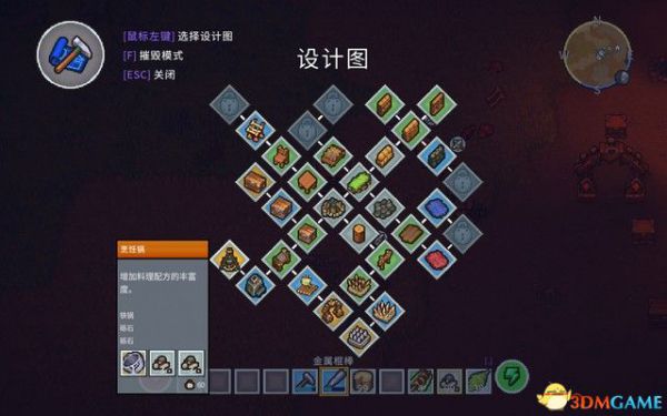 和制作不同,设计图要按R开启,点击一个物品便可查看需要哪些材料,