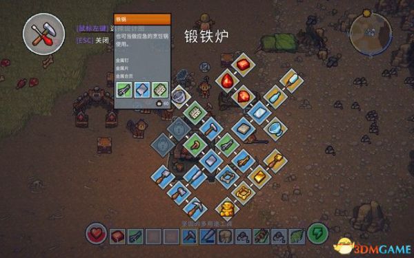 锻铁炉可以将金属矿炼制成高级道具,用于制作铁质、金质,