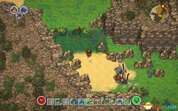 现在继续探索地图吧,如果路被堵住,就装备上石斧,