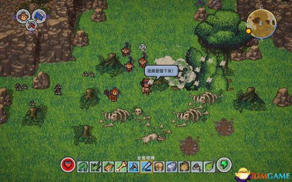 只要按住空格就行。一般来说,笔者的习惯是,招募大量猴子协助战斗,