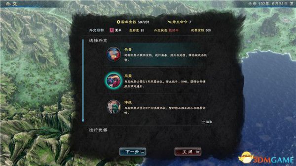 另外你还可以选择“亲善”增加与对方阵营的友好度。