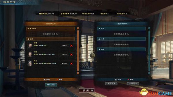 内政,建造,外交,升级等其它事情也需要至少一名武将才可以正常运作。