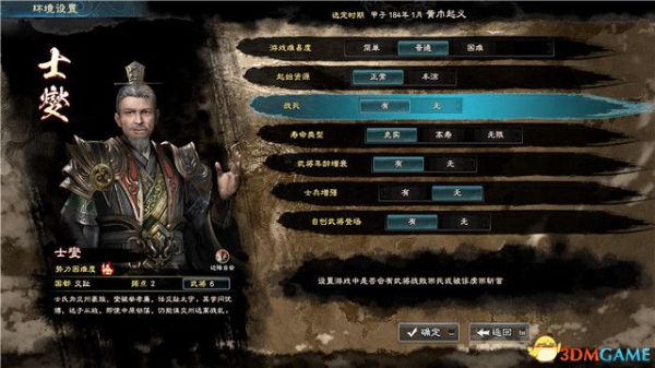 至于将领战死、衰老等选项,就看玩家喜好,喜欢几个将领打天下的就不要选择史实、衰老和战死了。