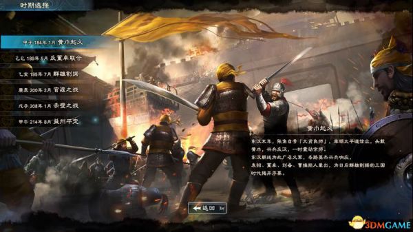 本作剧本最早从184年黄巾起义开始,最迟到334年游戏会强制结束。
