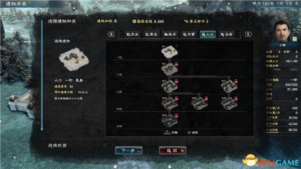 人口建筑的主要作用是提升人口增长的速度,后期的人口建筑还可以增加你发现在野武将的几率。