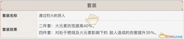 二件套:火元素抗性提高40%。